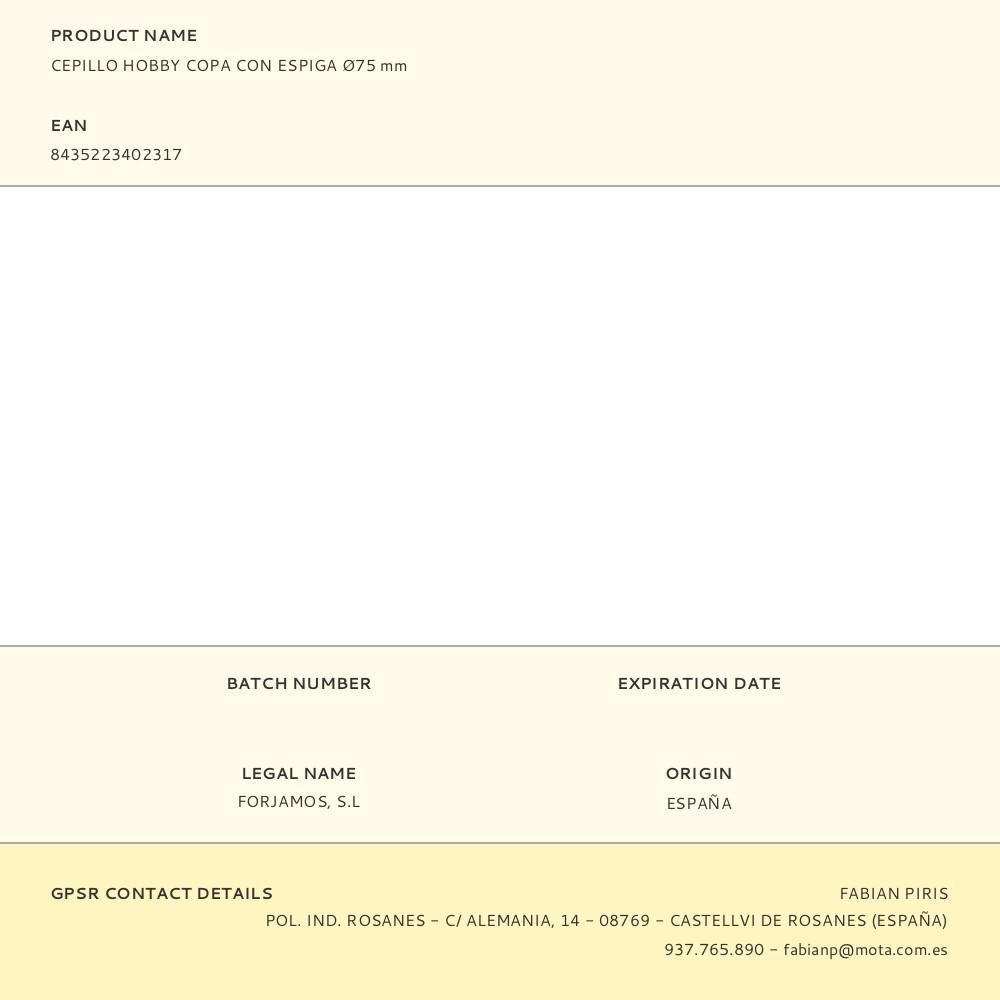 CEPILLO HOBBY COPA CON ESPIGA Ø75 mm
