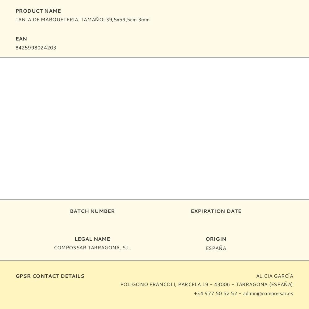 TABLA DE MARQUETERIA.TAMAÑO: 39,5x59,5cm 3mm DE GROSOR. MATERIAL: MDF