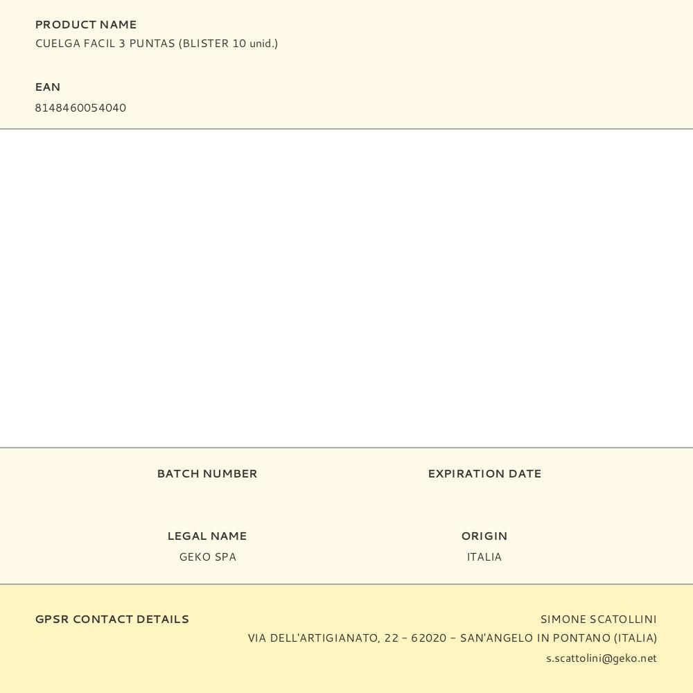 CUELGA FACIL 3 PUNTAS (BLISTER 10 unid.)