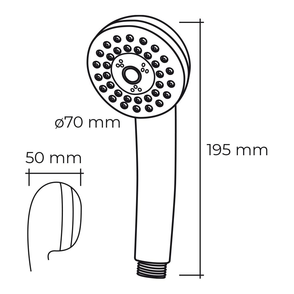 MANGO DE DUCHA ANTICALCAREO. CLASICO. 3 FUNCIONES. DIMENSIONES: Ø7x5x19,5cm COLOR CROMO. ERGONOMICO. MATERIAL: ABS EDM