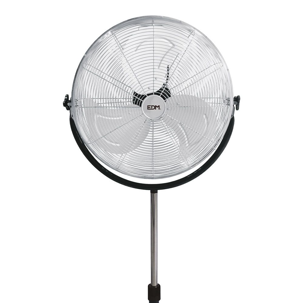 VENTILADOR DE PIE INDUSTRIAL, CON BASE CIRCULAR. CROMADO/NEGRO POTENCIA: 120W ASPAS: Ø50 cm ALTURA REGULABLE 118-148cm. 3 VELOCIDADES. CABEZAL AJUSTABLE. CAUDAL DE AIRE 6660m³/h. 64,9 dB. 220-240V 50Hz 3 PALAS BASE DE PLASTICO