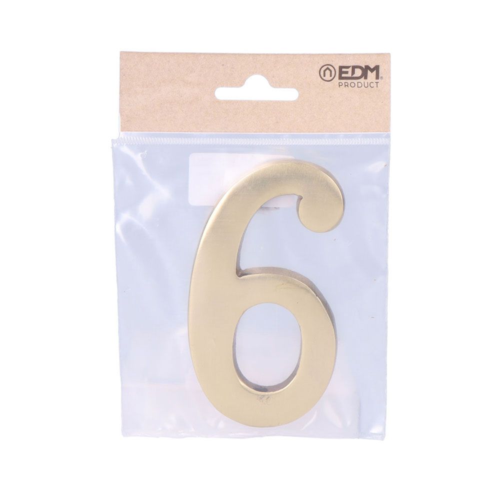 NÚMERO 6 LATÓN PULIDO 10cm FIJACIÓN INVISIBLE