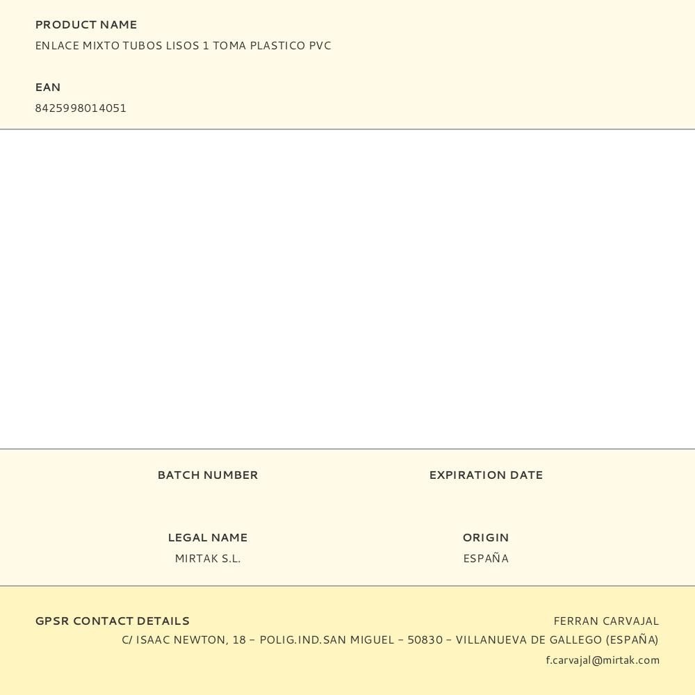 ENLACE MIXTO TUBOS LISOS 1 TOMA PLASTICO PVC