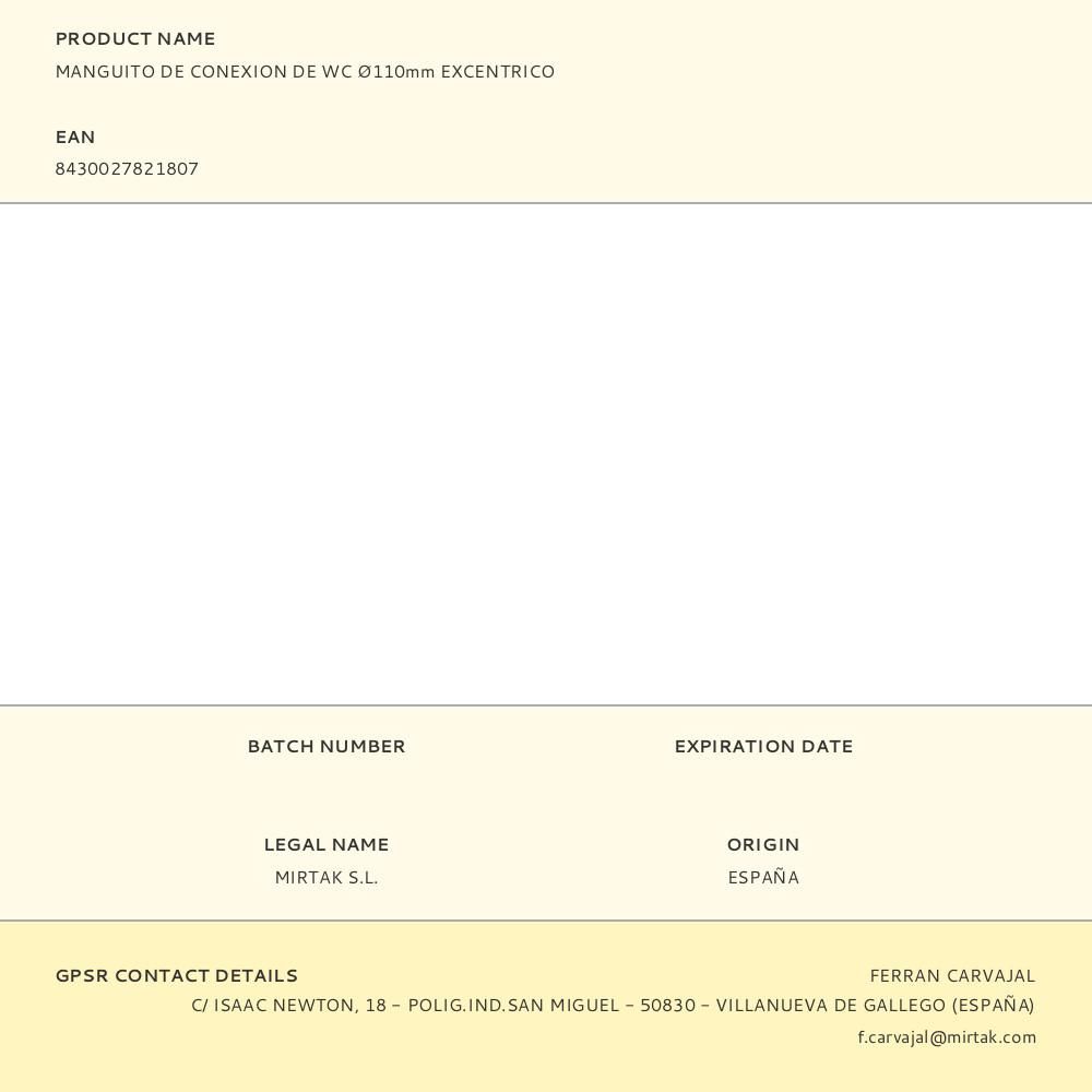 MANGUITO DE CONEXION DE WC Ø110mm EXCENTRICO
