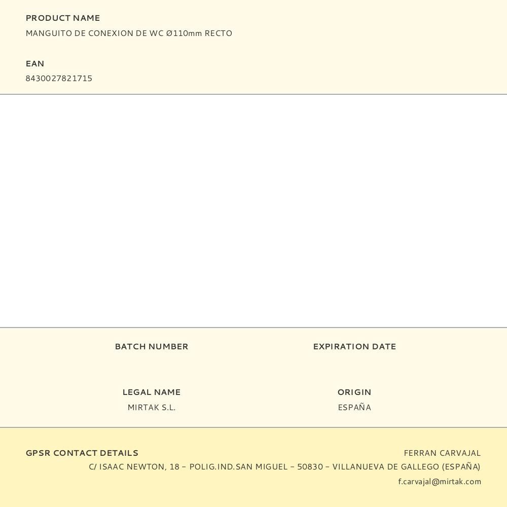 MANGUITO DE CONEXION DE WC Ø110mm RECTO