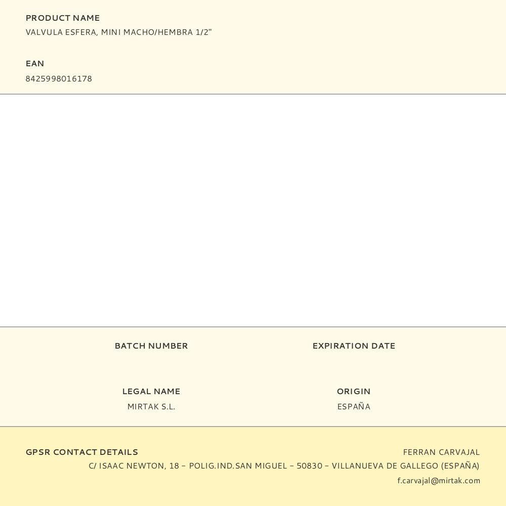 VALVULA DE ESFERA, MINI MACHO/HEMBRA 1/2" EDM