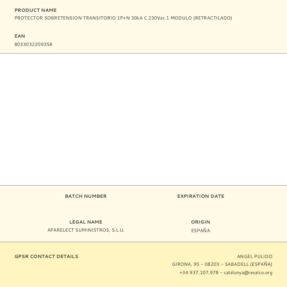 PROTECTOR SOBRETENSION TRANSITORIO 1P+N 30kA C 230Vac 1 MODULO (RETRACTILADO)