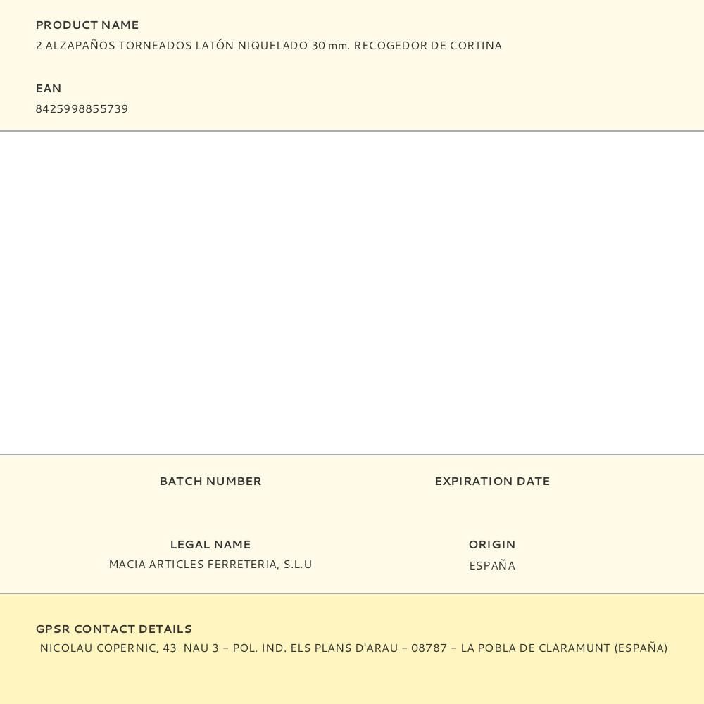 ALZAPAÑOS TORNEADOS LATÓN NIQUELADO 30 mm. RECOGEDOR DE CORTINA, 2 uds