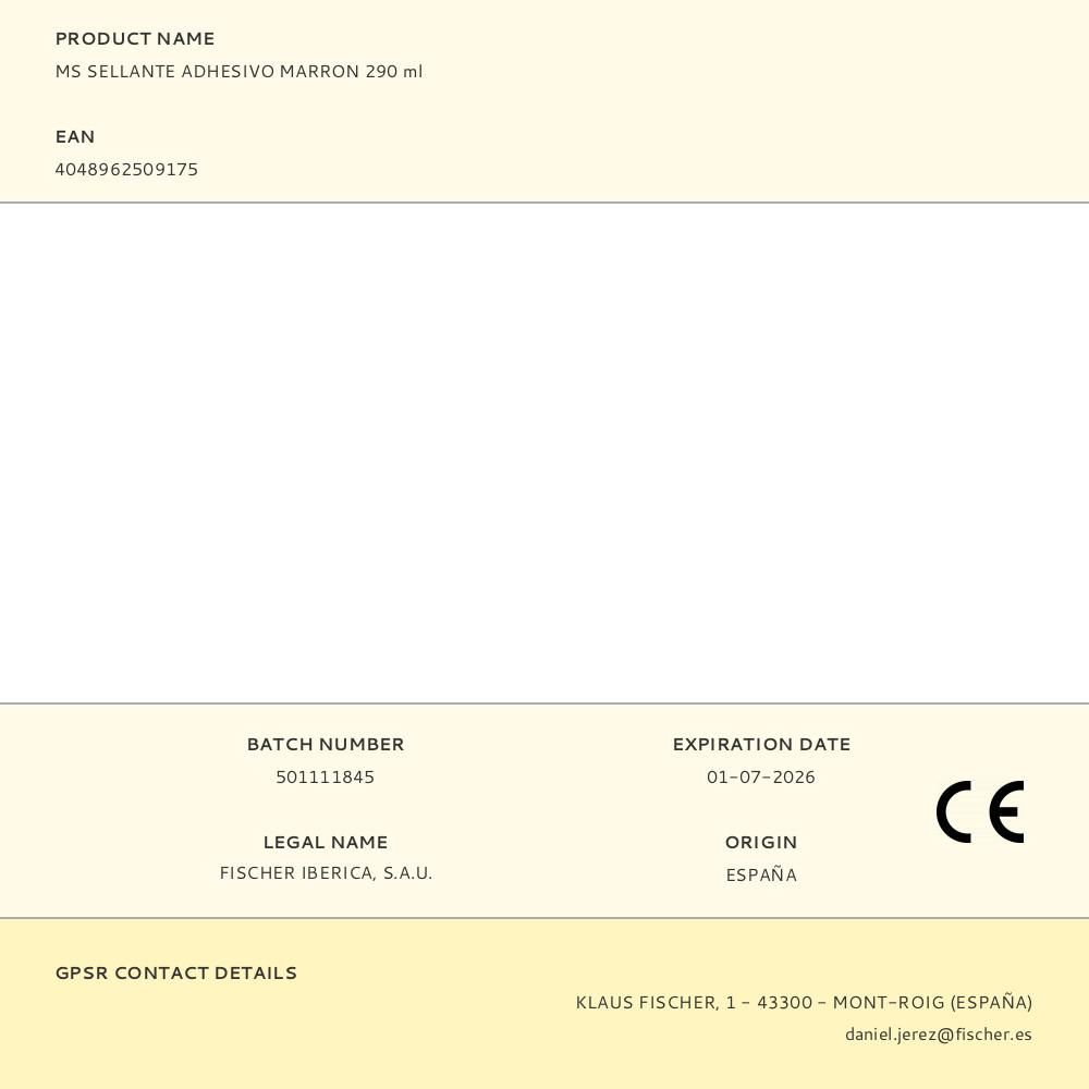 MS SELLANTE ADHESIVO MARRON FISCHER 290ml PEGA SELLA RELLENA ELASTICO 700% 100kg/10cm² APLICABLE EN HUMEDO INTEMPERIE