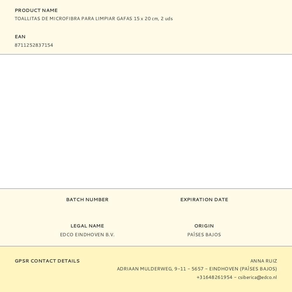 TOALLITAS DE MICROFIBRA PARA LIMPIAR GAFAS 15 x 20 cm, 2 uds