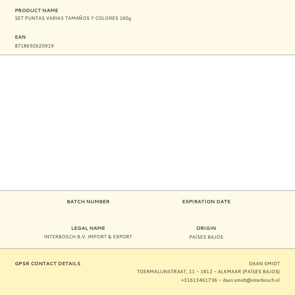 SET PUNTAS VARIAS TAMAÑOS Y COLORES 160g