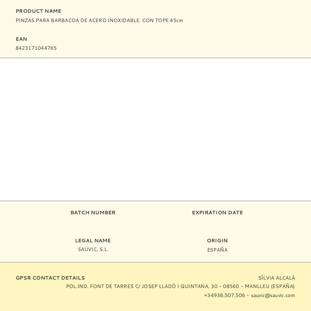 PINZAS PARA BARBACOA DE ACERO INOXIDABLE. CON TOPE 45cm