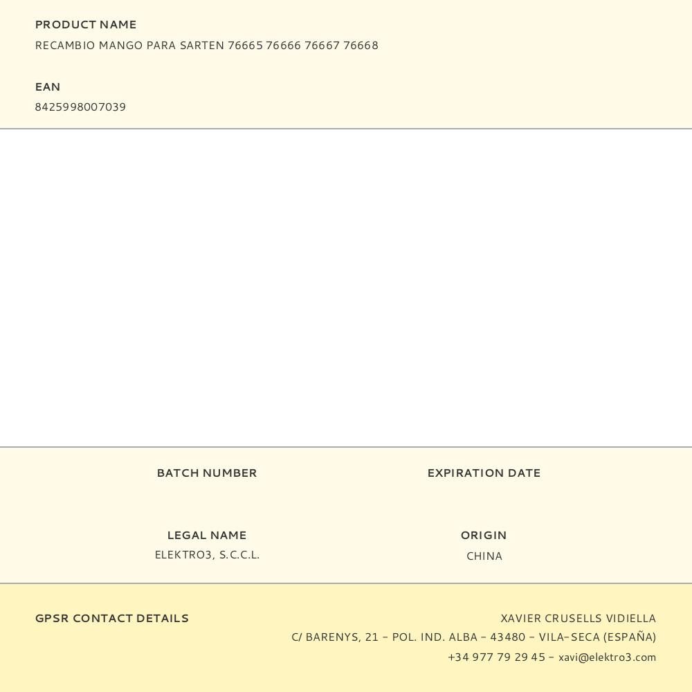 RECAMBIO MANGO PARA SARTEN 76665 76666 76667 76668