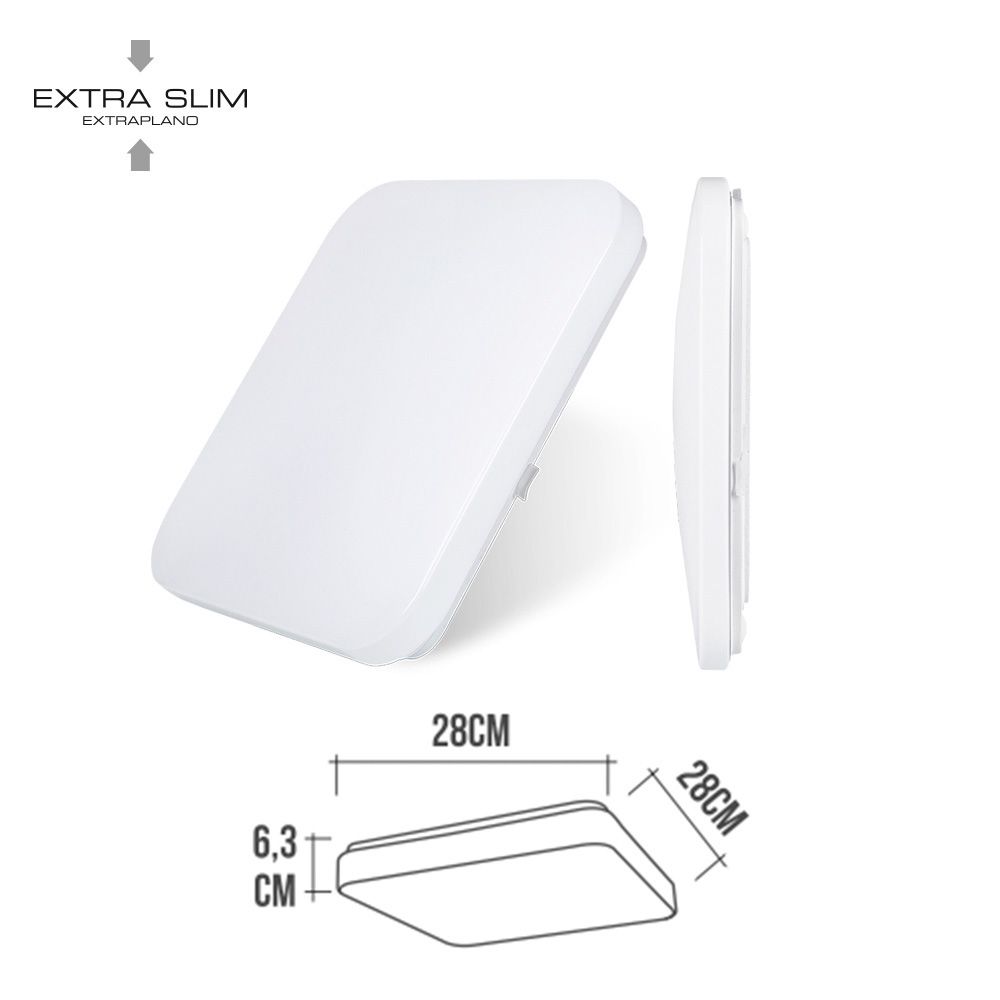 APLIQUE CUADRADO DE SUPERFICIE EXTRAPLANO CON 18 LEDS 12 w - 1160 lm - 4000 k, LUZ DIA - GRADO DE PROTECCION IP20 - CLASE F - 220-240V - 27,5 x 27,5 x 6,2 cm