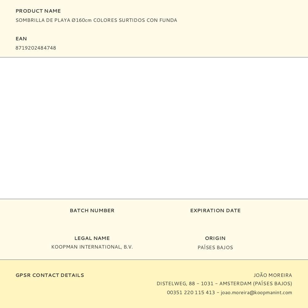 SOMBRILLA DE PLAYA Ø160cm (diámetro) COLORES SURTIDOS CON FUNDA UPF 40-50 + UV RADIACION BLOQUEADA 97.5-98%