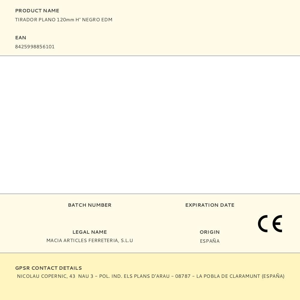 TIRADOR PLANO 120mm H° NEGRO EDM