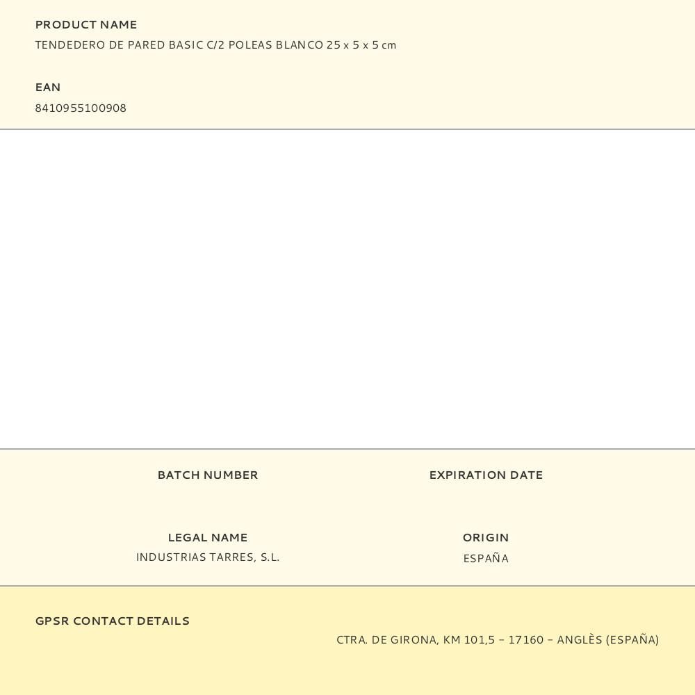 TENDEDERO DE PARED BASIC C/2 POLEAS BLANCO 25 x 5 x 5 cm