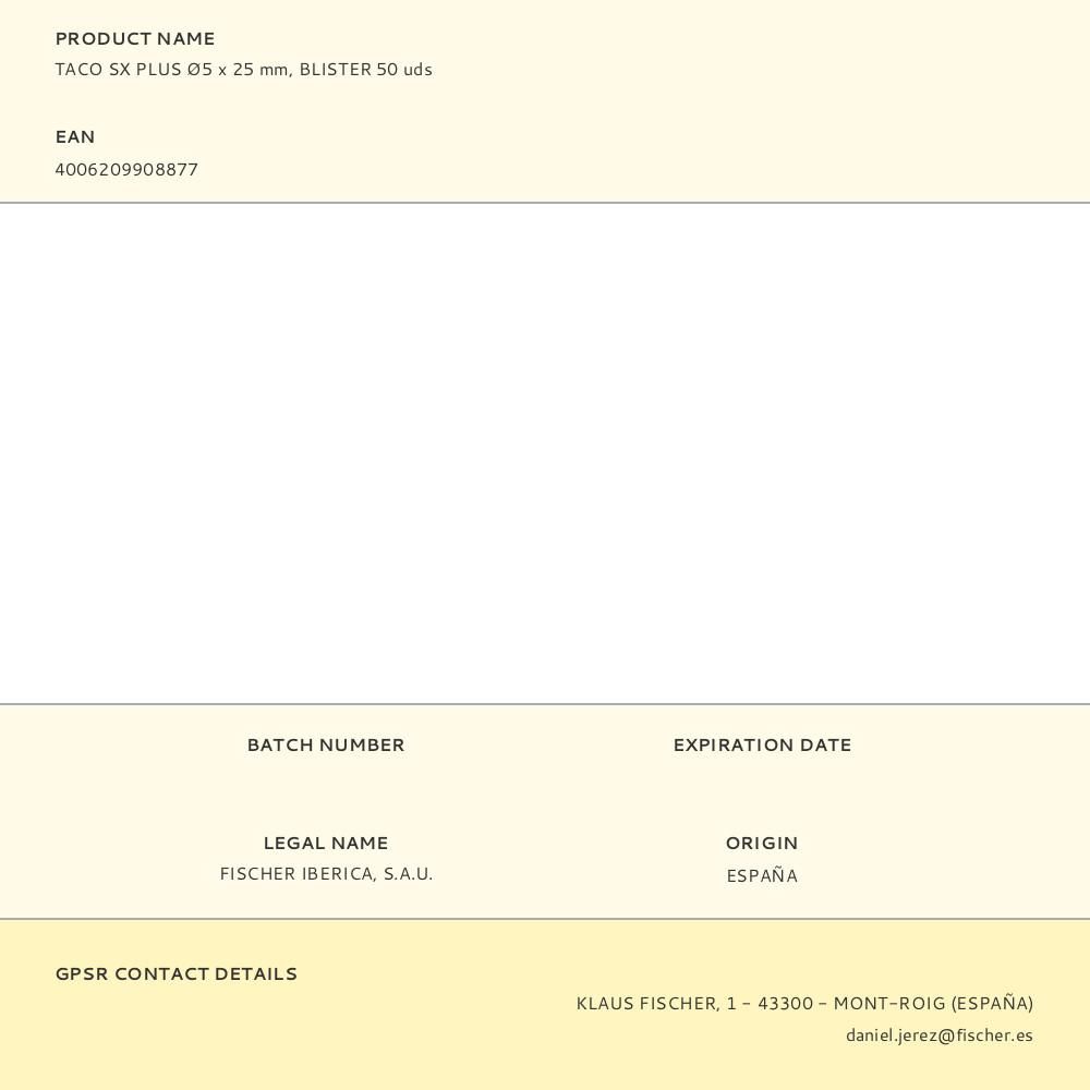 TACO SX PLUS Ø5 x 25 mm, BLISTER 50 uds