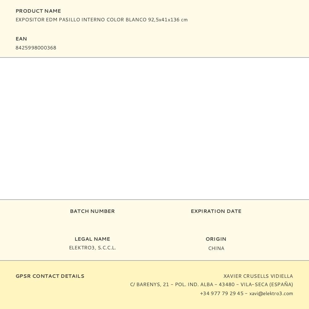 EXPOSITOR EDM PASILLO INTERNO COLOR BLANCO 92,5x41x136 cm