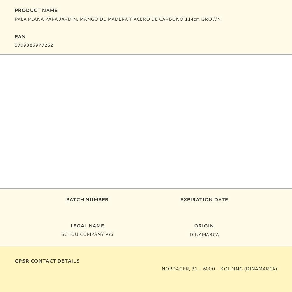 PALA PLANA PARA JARDIN. MANGO DE MADERA Y ACERO DE CARBONO 114cm GROWN