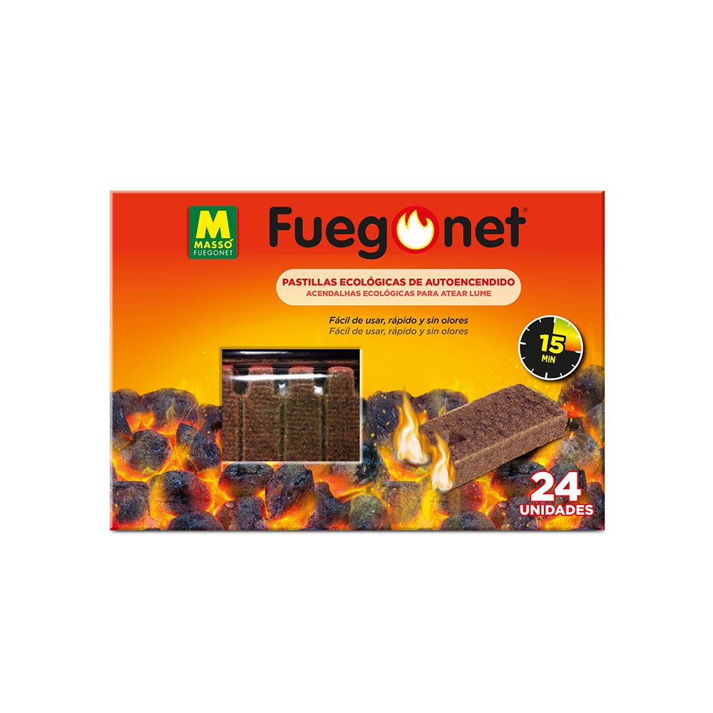 PASTILLAS DE AUTOENCENDIDO - ECOLOGICAS - ENVASE 16+8 unid. - (LARGA DURACION DE ENCENDIDO Y GRAN PODER CALORIFICO - COMPUESTAS DE MADERA VEGETAL Y ACEITES VEGETALES) - FUEGONET - MASSO