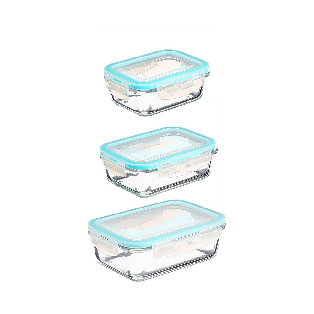 CONJUNTO 3 FIAMBRERAS DE CRISTAL TAMAÑOS VARIOS 330 ml - 13 x 10 x 5 cm, 800 ml - 18,5 x 12,5 x 6 cm, 1.730 ml - 23 x 16,5 x 8,5 cm