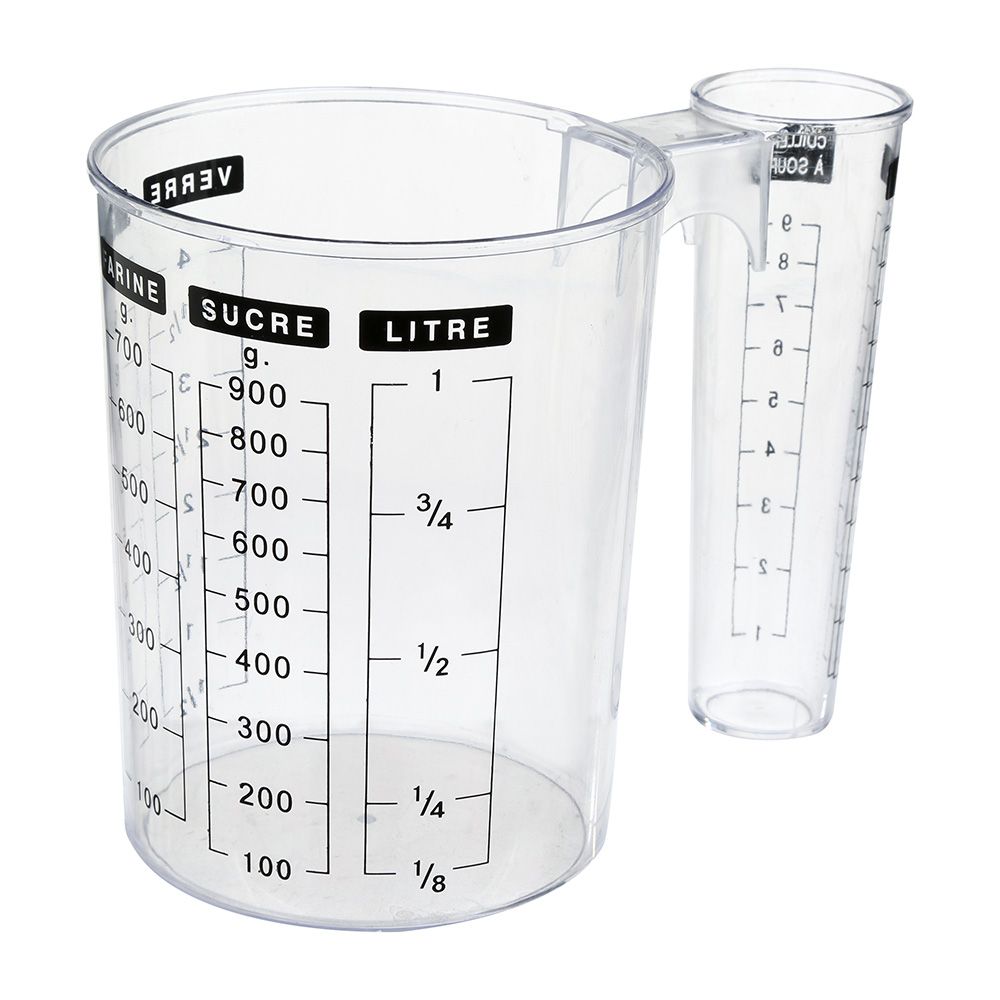 JARRA DE MEDICION CON DOS DEPOSITOS DIFERENTES 1L