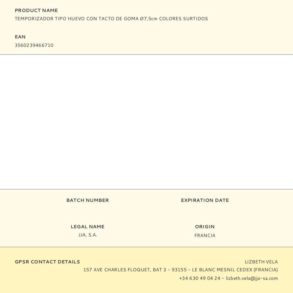 TEMPORIZADOR TIPO HUEVO CON TACTO DE GOMA Ø7,5 cm COLORES SURTIDOS