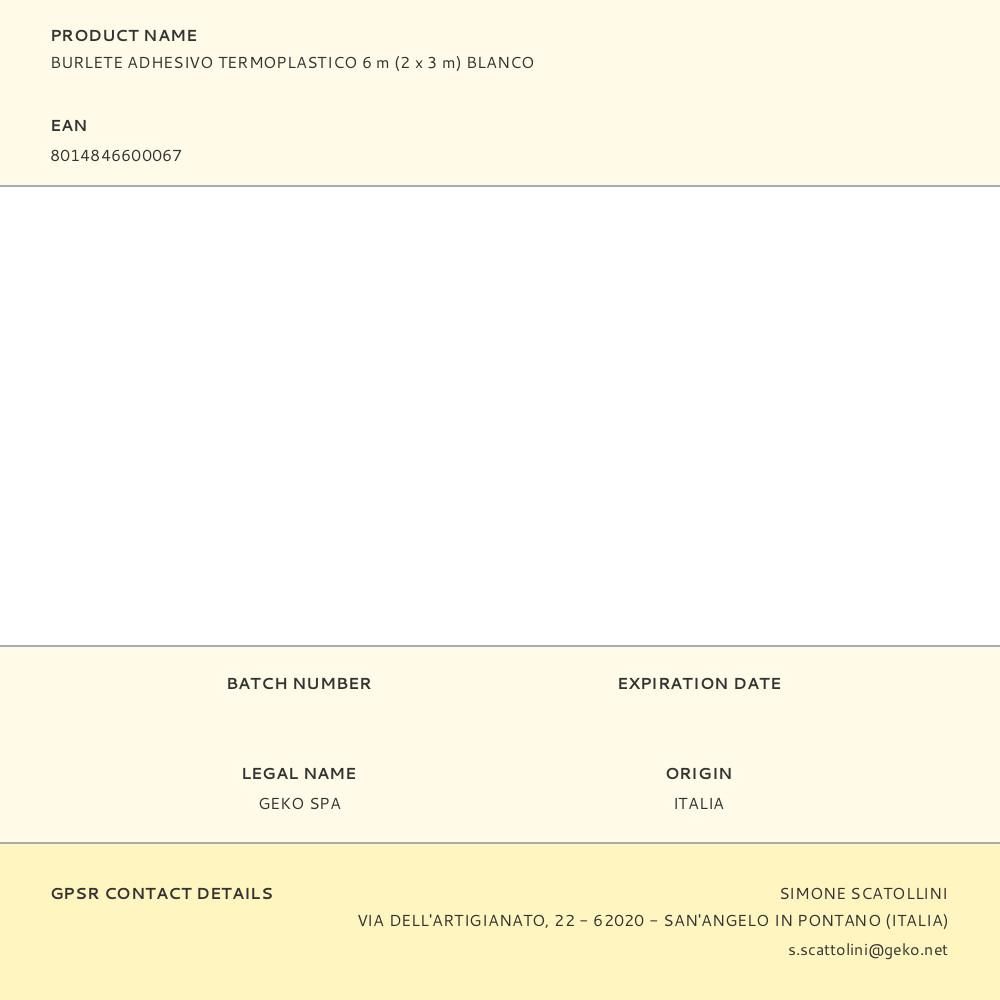 BURLETE ADHESIVO TERMOPLASTICO 6 m (2 x 3 m) BLANCO