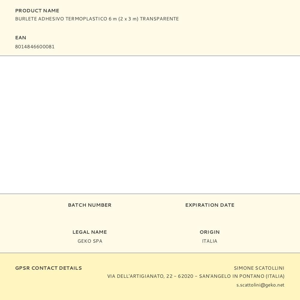 BURLETE ADHESIVO TERMOPLÁSTICO 6 m (2 x 3 m) TRANSPARENTE
