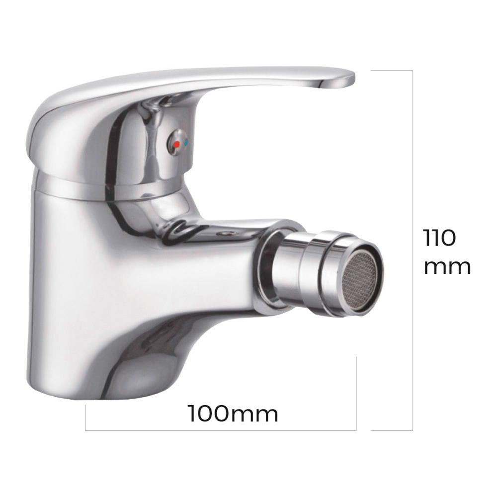 GRIFO MONOMANDO DE BIDET. COLOR CROMADO. MATERIAL: CUERPO DE LATÓN CON MANGO DE ZINC. CON CARTUCHO CERÁMICO. LONGITUD DE LA MANGUERA: 40 cm. VELOCIDAD DE FLUJO: 24 - 26 L/min - 0,3 Pa. INCLUYE: 2 LATIGUILLOS DE CONEXIÓN Y ACCESORIOS DE FIJACIÓN. MEDIDAS: 10 x 11 cm