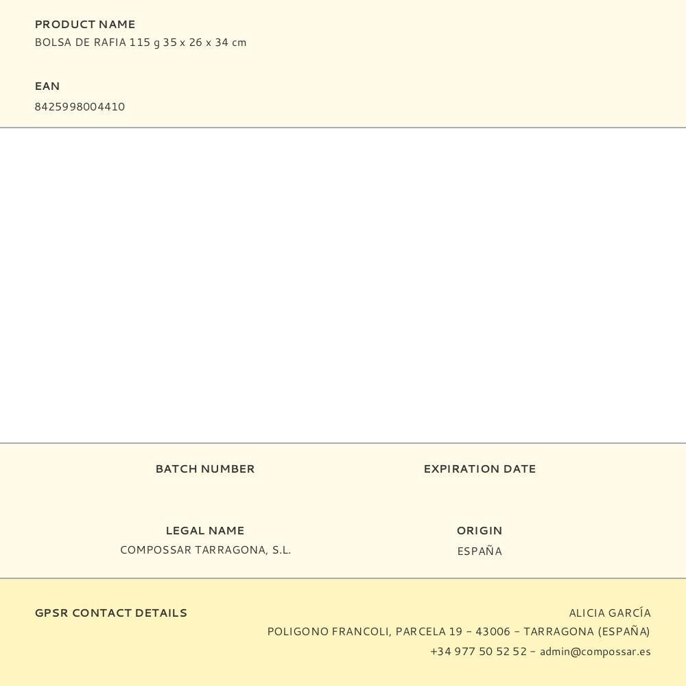 BOLSA DE RAFIA 115 g 35 x 26 x 34 cm