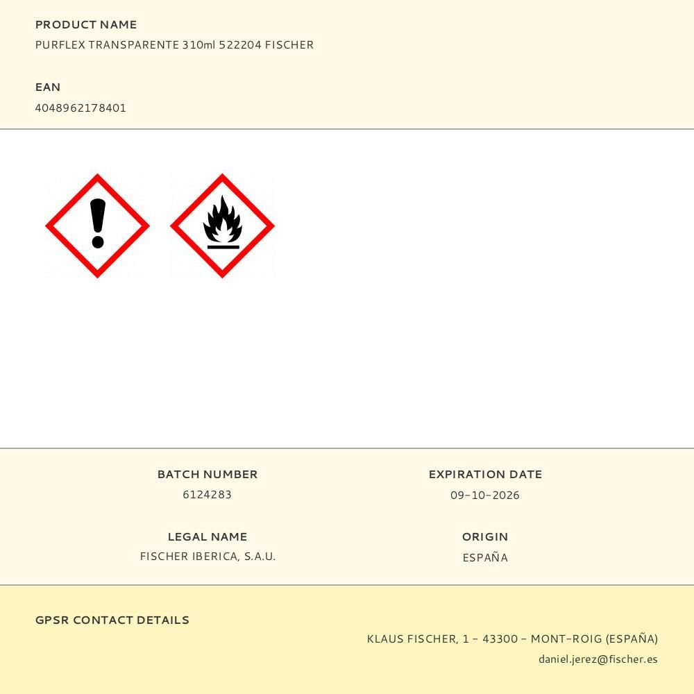 PURFLEX TRANSPARENTE 310ml 522204 FISCHER