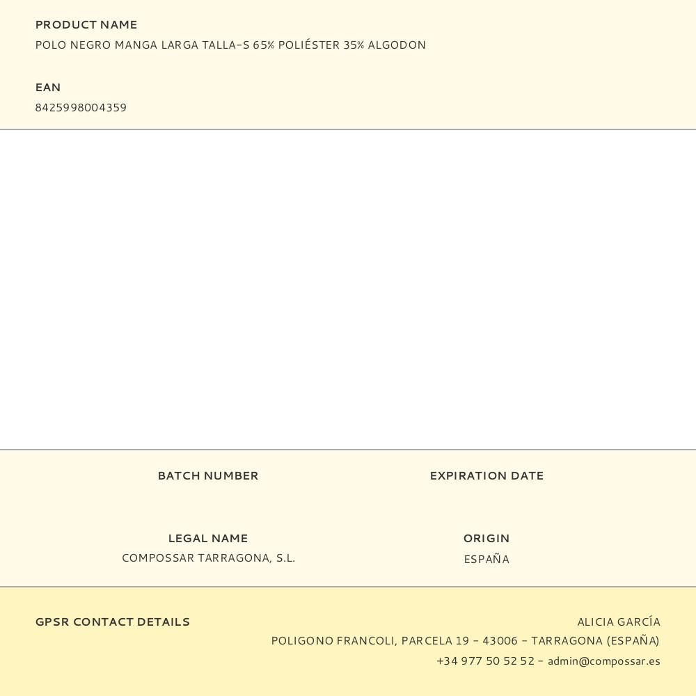 POLO NEGRO MANGA LARGA TALLA-S 65% POLIÉSTER 35% ALGODON