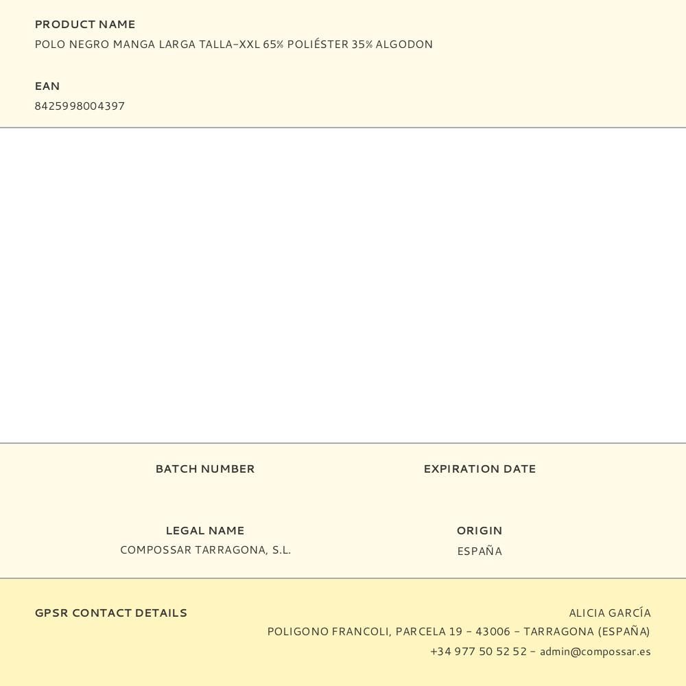 POLO NEGRO MANGA LARGA TALLA-XXL 65% POLIÉSTER 35% ALGODON