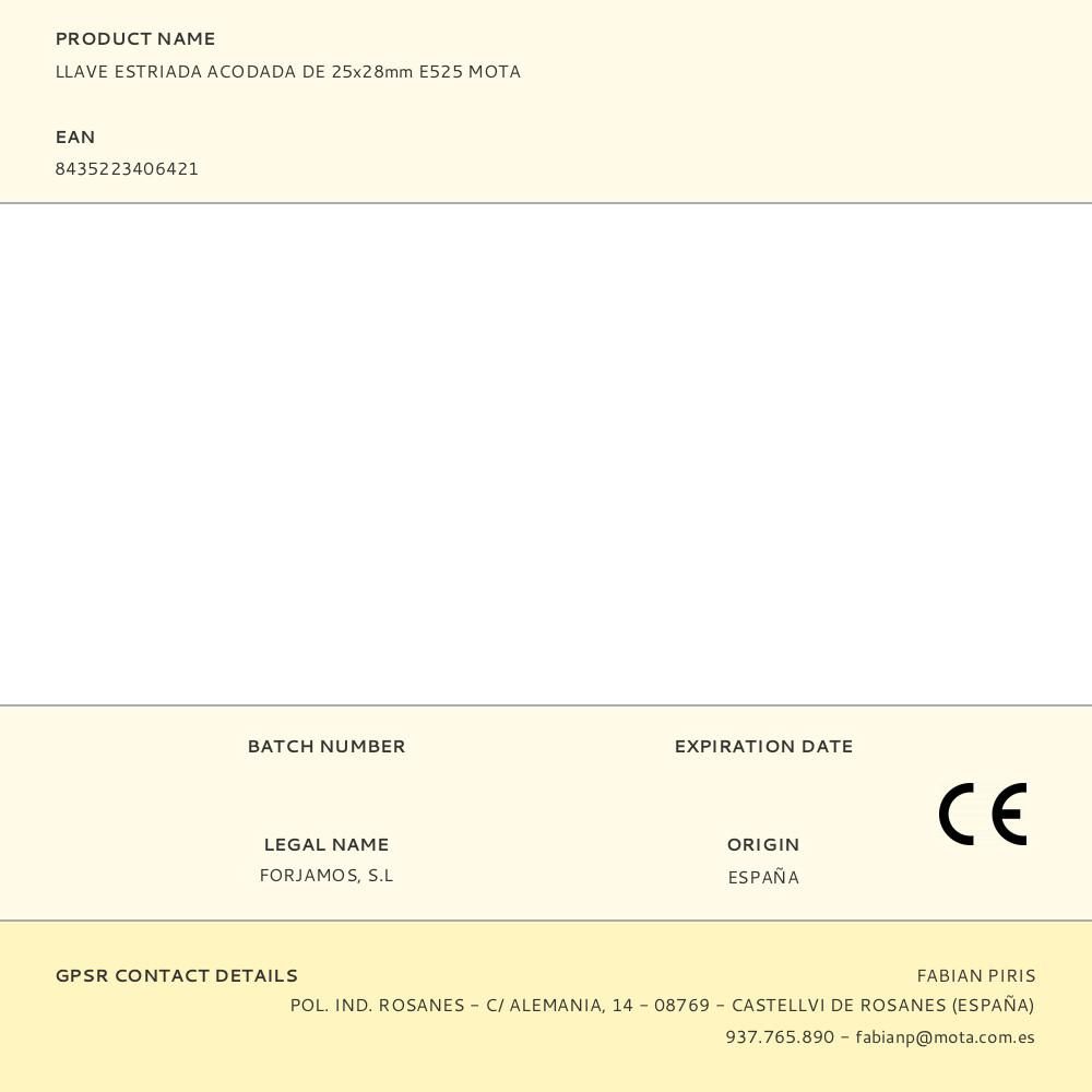 LLAVE ESTRIADA ACODADA DE 25 x 28 mm
