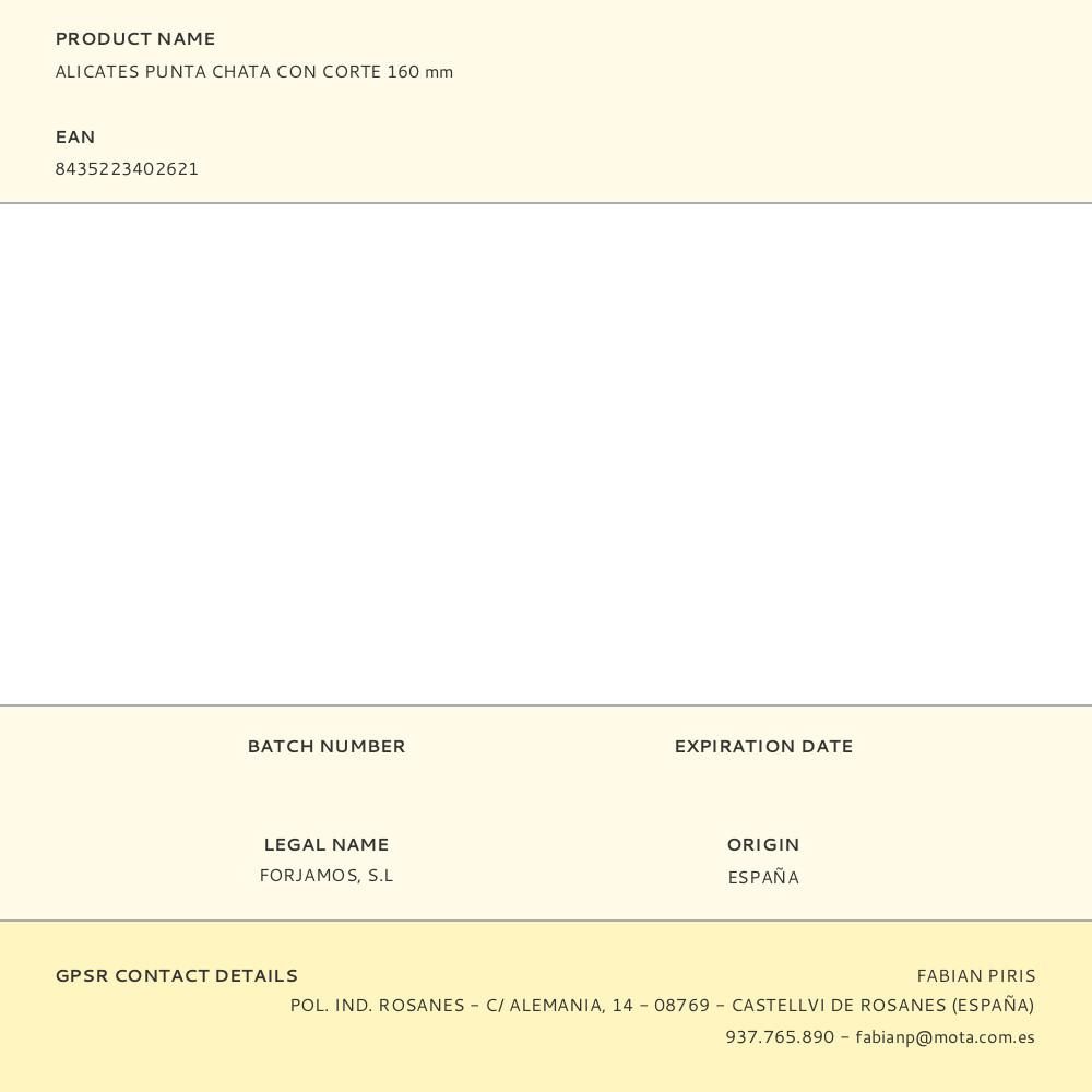 ALICATES PUNTA CHATA CON CORTE 160 mm