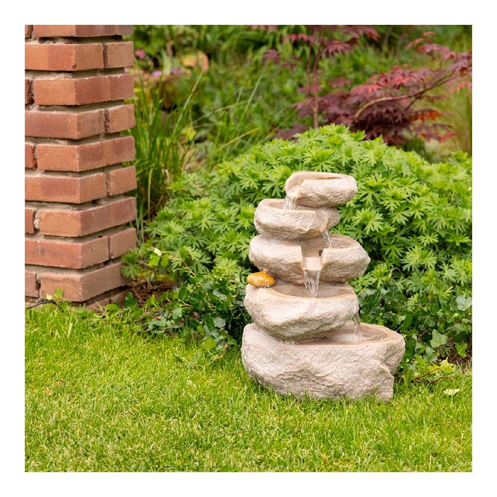 FUENTE DE POLIRESINA PARA INTERIOR Y EXTERIOR, 3 LEDS CALIDS. CABLE DE ALIMENTACION DE 2 m - 18 x 23 x 35 cm