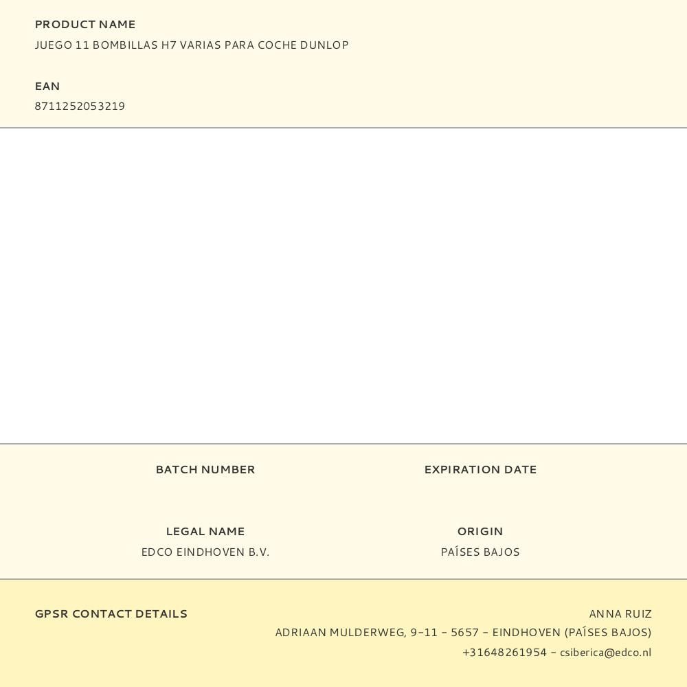 JUEGO 11 BOMBILLAS H7 VARIAS PARA COCHE DUNLOP