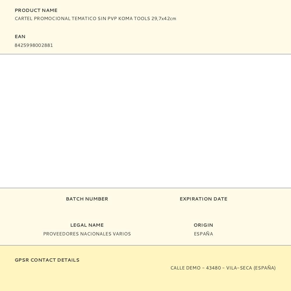 CARTEL PROMOCIONAL TEMATICO SIN PVP KOMA TOOLS 29,7x42cm