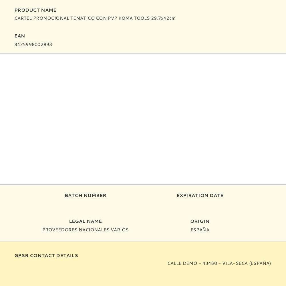 CARTEL PROMOCIONAL TEMATICO CON PVP KOMA TOOLS 29,7x42cm
