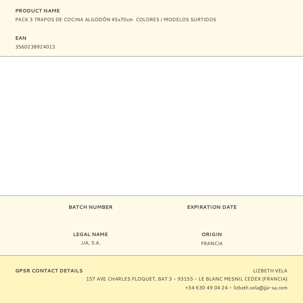 TRAPOS DE COCINA DE ALGODÓN, COLORES SURTIDOS, 45 x 70 cm, 3 uds