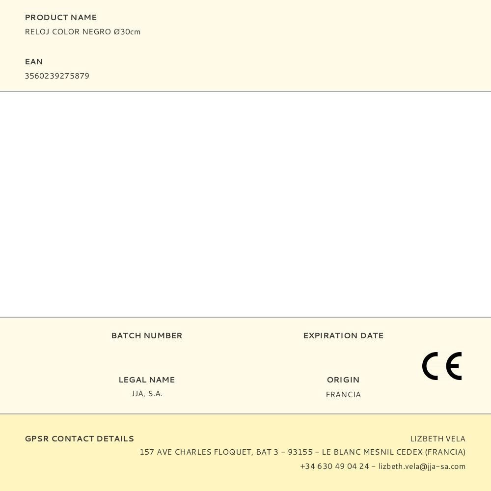 RELOJ COLOR NEGRO Ø30cm