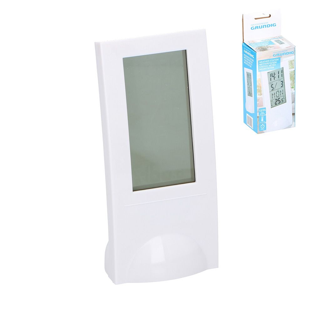 ESTACION METEOROLOGICA BLANCA GRUNDIG. INCLUYE TERMOMETRO, RELOJ, DESPERTADOR, CALENDARIO 12,5x65x55cm