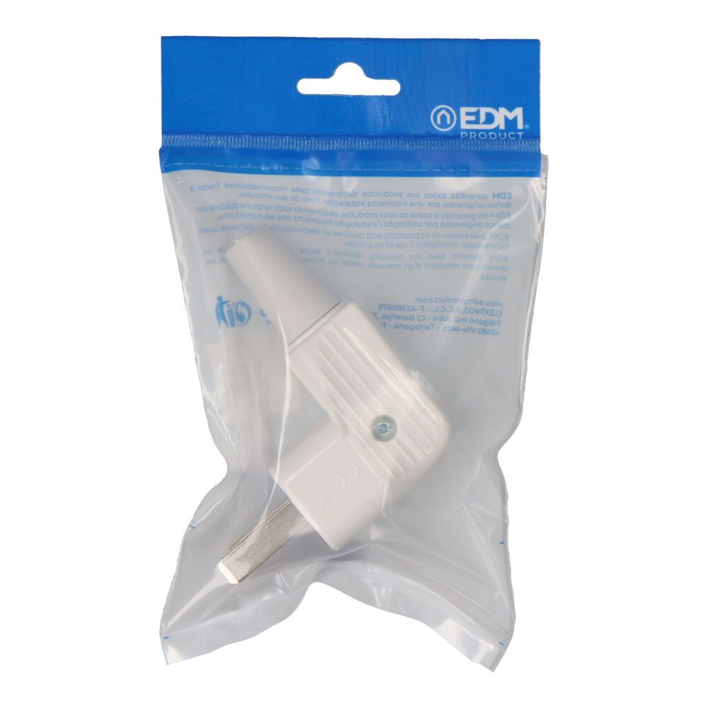 CLAVIJA BIPOLAR COCINA 25A/250V SALIDA DEL CABLE LATERAL ESPECIAL HORNOS, BLANCA (ENVASADA)