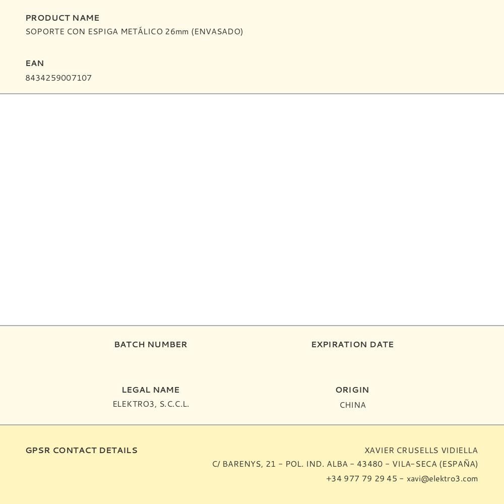 SOPORTE CON ESPIGA METÁLICO 26mm (ENVASADO)