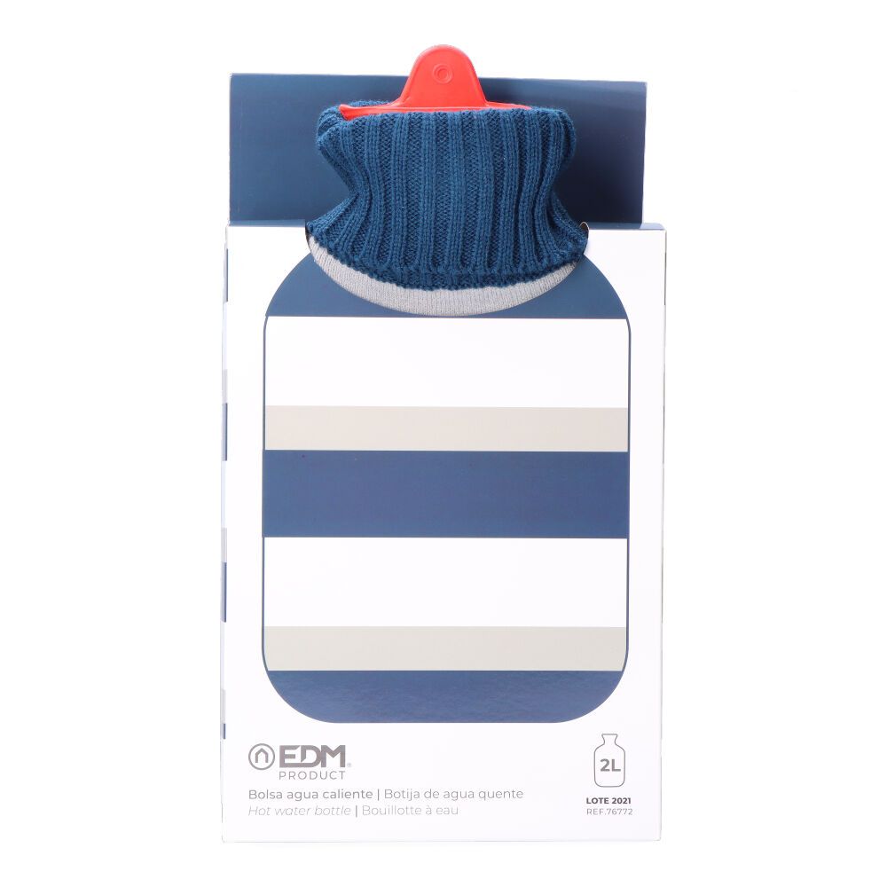 BOLSA DE AGUA CALIENTE 2 L MODELO RAYAS AZULES