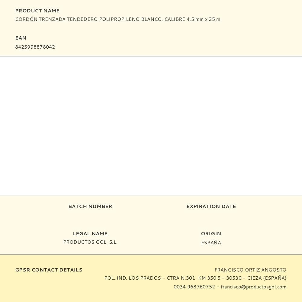 CORDÓN TRENZADA TENDEDERO POLIPROPILENO BLANCO, CALIBRE 4,5 mm x 25 m