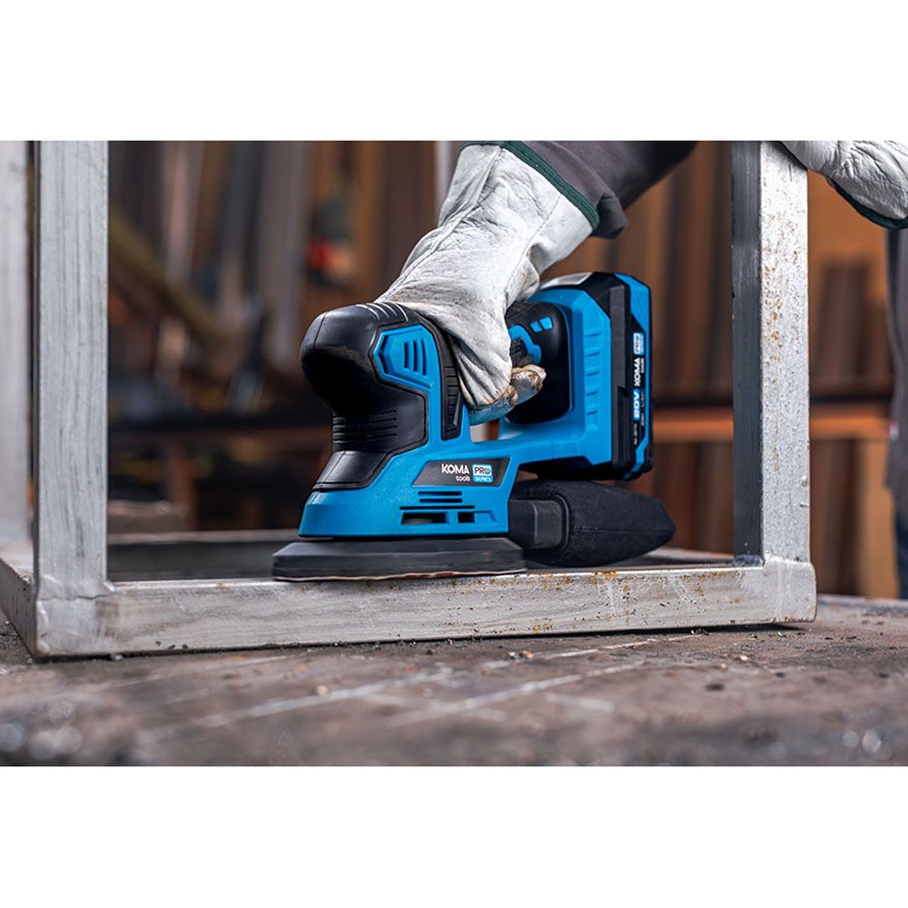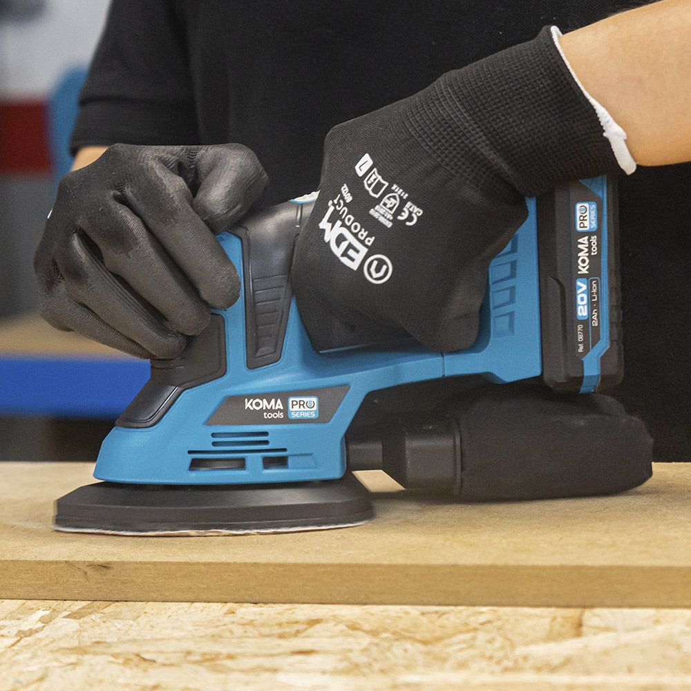 LIJADORA DE BATERIA LI-ON. POTENCIA: 20 V Y 2,0A. SIN BATERÍA NI CARGADOR. 1 VELOCIDAD DE 0 A 12000rpm. MANGO ERGONOMICO DE TACTO SUAVE ANTIVIBRACION. SUELA DE VELCRO. ACCESORIOS: FILTRO RECOGE POLVO + 2 LIJAS P80. 20V-LM. DIMENSIONES: 20,4 x 15,5 cm