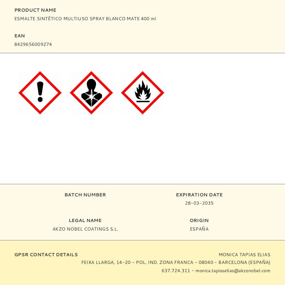 ESMALTE SINTÉTICO MULTIUSO SPRAY BLANCO MATE 400 ml